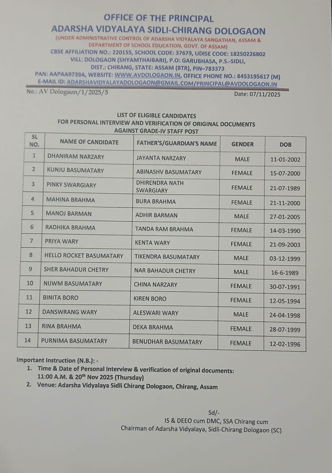 Adarsha Vidyalaya Dologaon Sidli Chirang is a dynamic, forward thinking school which was started in Dologaon (Shyamthaibari), Chirang at Aug 2022 under the Department of School Education, Government of Assam and Adarsha Vidyalaya Sangathan, Assam.